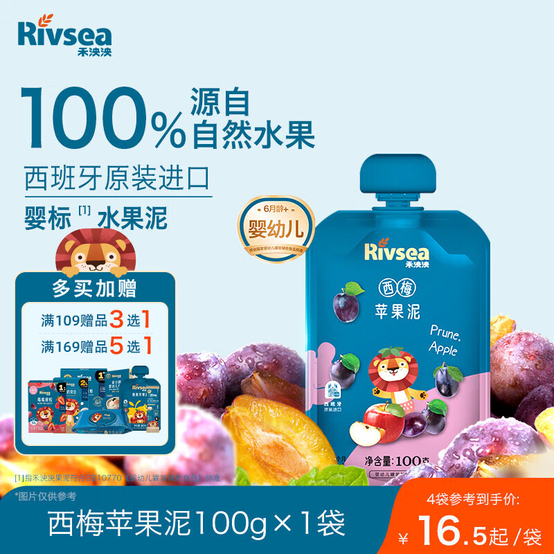 禾泱泱婴幼儿果泥 宝宝辅食6月+ 进口水果泥 猕猴桃梨子香蕉泥100g