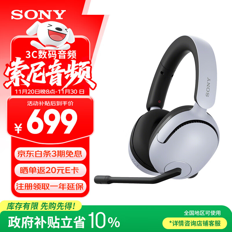 索尼(SONY)INZONE 英纵 H5性能之选无线电竞游戏耳机 虚拟7.1 2.4GHz 3.5mm高清麦克风 电脑耳麦PS5适配 白色