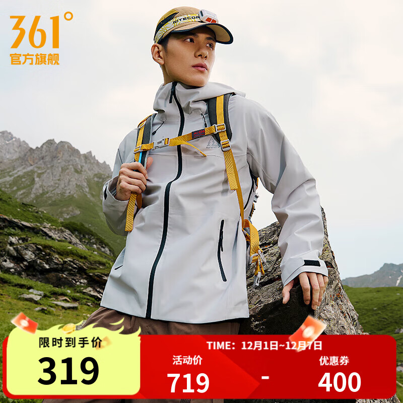 361°【武霞客】雨屏冲锋衣男秋季防水硬壳户外武侠客防风登山服男 页岩灰 XL