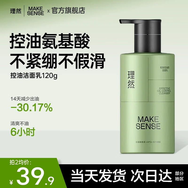理然洗面奶男士学生氨基酸控油清洁油痘肌肤专研温和洁面乳 【店长推荐】控油洗面奶120g