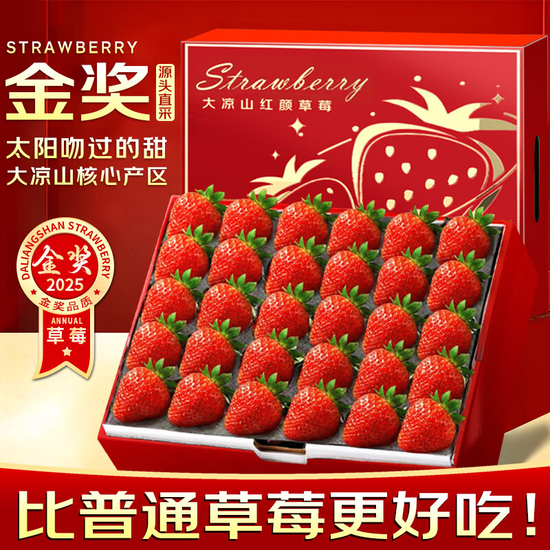 松筱红颜草莓99水果【JD多地次日达】四川大凉山奶油甜草莓年货节水果 2斤单果12-15g净重1.4斤