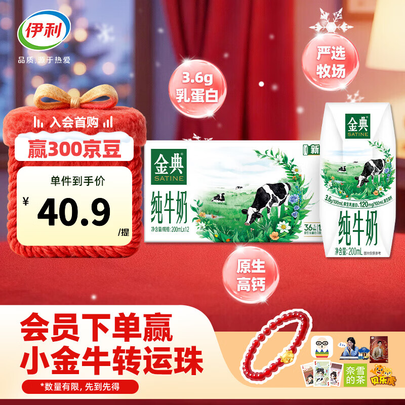 伊利金典纯牛奶200ml*12盒 3.6g蛋白质 9月产