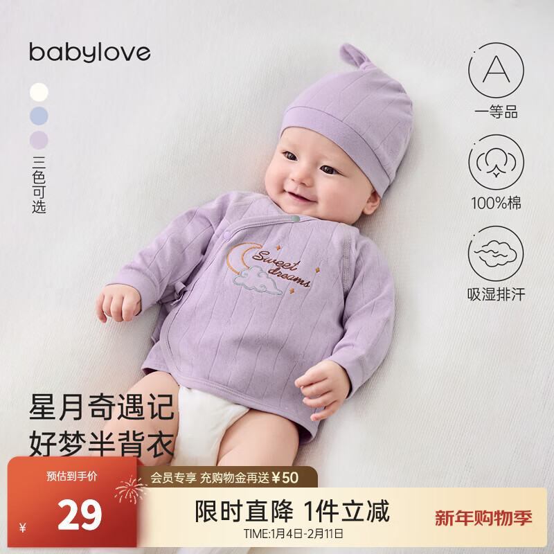 babylove【清仓】新生儿半背衣和尚服秋季纯棉提花婴儿上衣睡衣星月棉毛 莫奈紫 59
