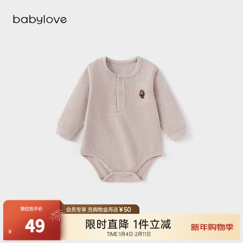 babylove【清仓】婴儿包屁衣秋冬季宝宝三角哈衣爬服弹力睡衣微绒保暖衣服 浅沙色 66cm