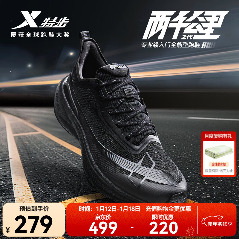 特步【2000公里二代】跑鞋男两千公里耐磨回弹跑鞋体考竞训女跑步鞋 黑 男-建议拍小半码 41