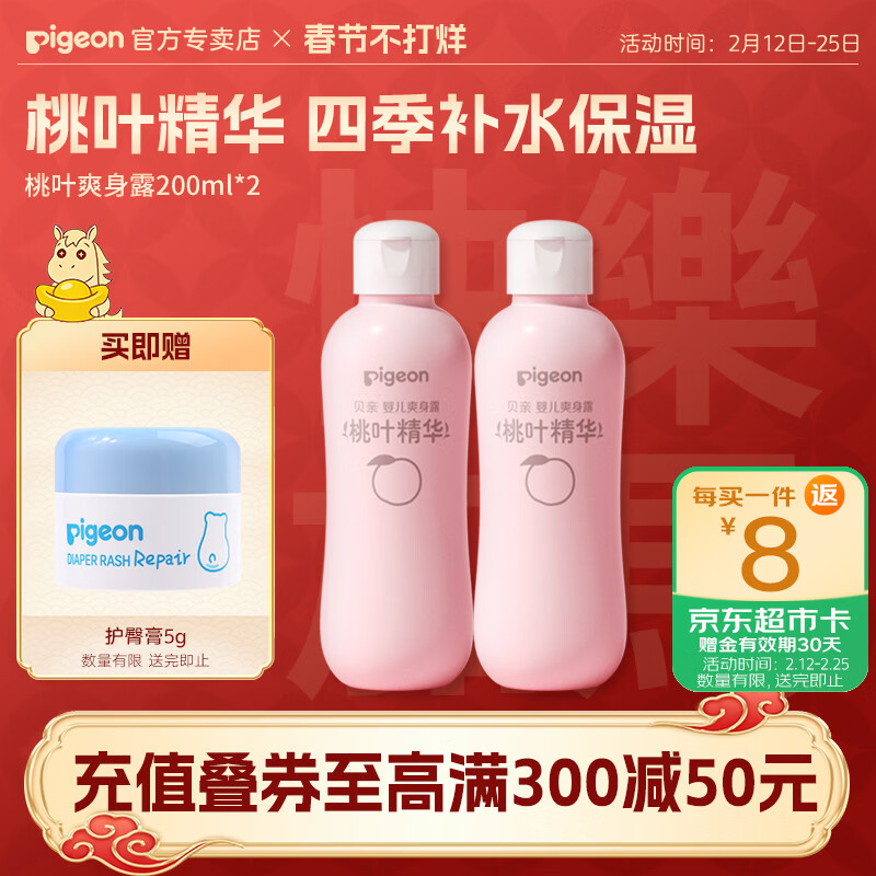 贝亲桃子水 桃叶精华爽身液体精华 儿童液体爽身粉婴儿痱子水 桃子水200mlx2支装