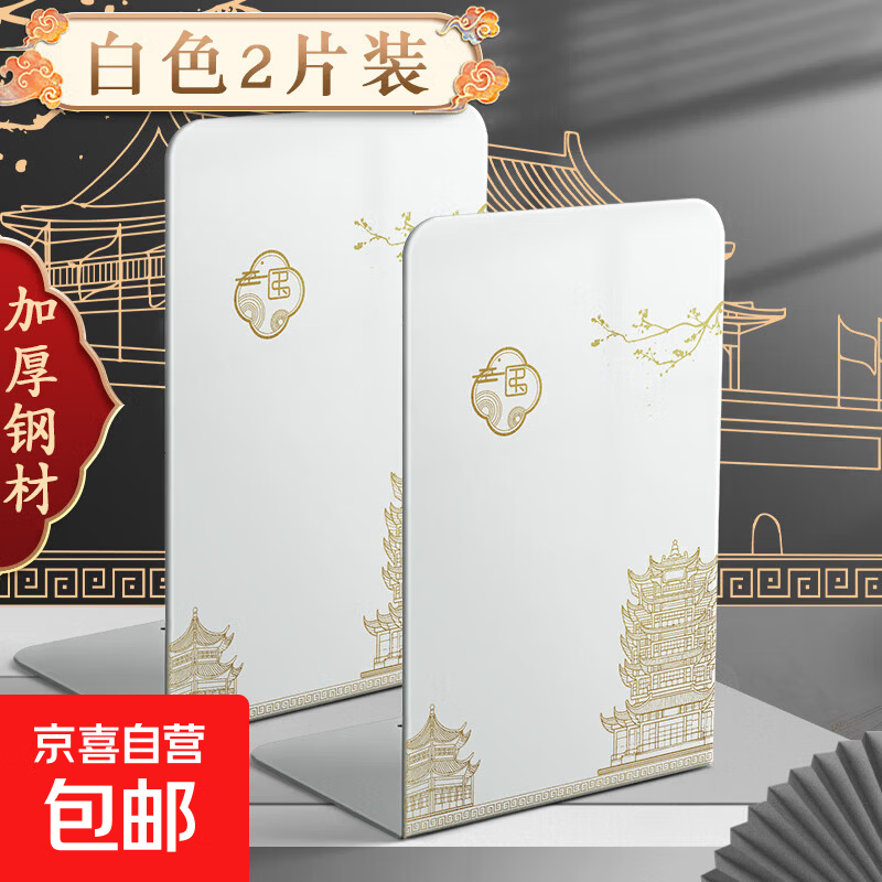 书立架金属加厚书立置物架书架桌面放书挡板l型高中生书夹固定书本办公室桌面收纳书靠架书夹立架 全新升级国风款【2片装】国潮白 无规格