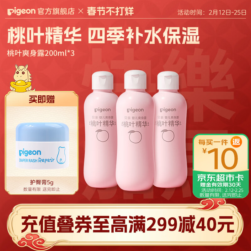 贝亲桃子水 爽身粉婴儿 液体爽身粉 桃叶精华爽身露 儿童液体爽身露 尝鲜装200ml*3支