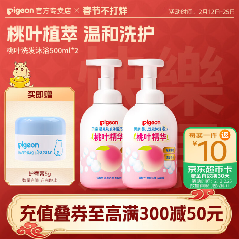 贝亲洗发沐浴二合一 儿童沐浴露 婴儿沐浴露洗发水二合一 桃叶精华 洗发沐浴泡沫促销装900ml