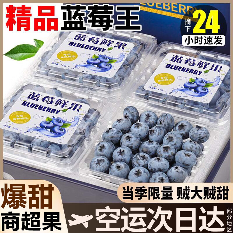 粤迎云南花香蓝莓【空运-多地次日达】新鲜现摘高山当季应季时令水果 4盒亲选SS+级果王【单果18mm+】净400g