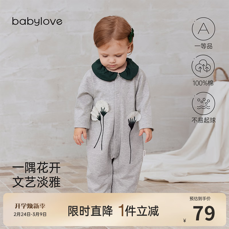 babylove【清仓】婴儿连体衣春秋季纯棉荷叶领女宝宝哈衣甜美一隅花开 一隅花开 73cm