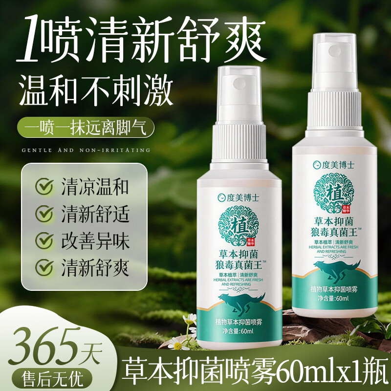 度美博士植物草本抑菌喷雾狼毒真菌清爽舒爽足部护理足部抑菌喷剂 植物草本脚气喷雾60mlX2瓶