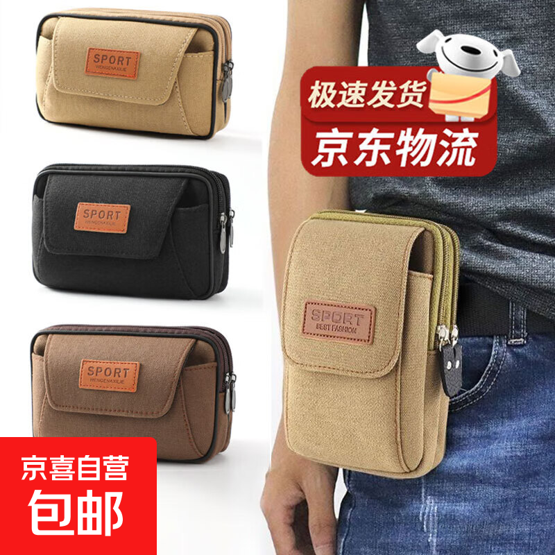 手机包腰包户外穿皮带多功能零钱包手机套横竖款运动工地腰挂包 咖色-横款【手机包】3层