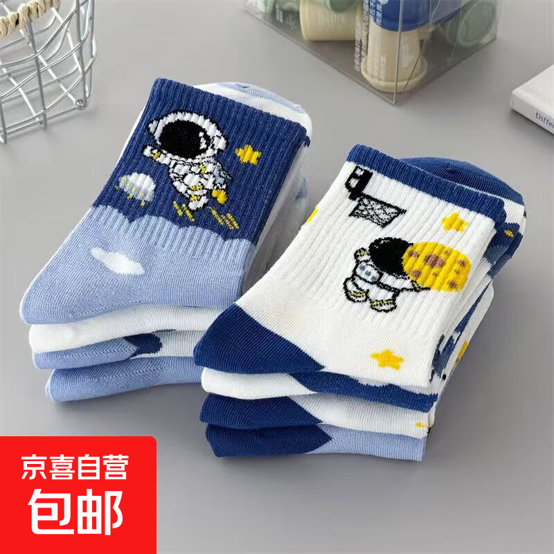 儿童袜子夏季男童春款中筒卡通宇航员学生青少年男孩中大童运动袜 宇航员1双装 随机一双 1双 5-9岁 26-32码
