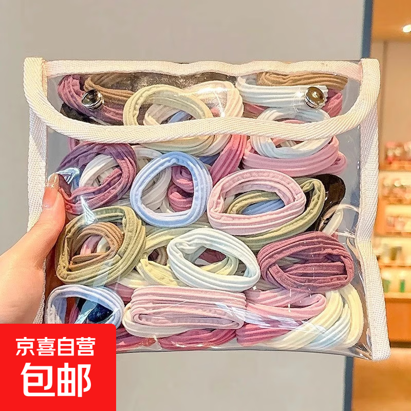 海盐蓝发绳发绳发圈头绳简约扎高马尾皮筋少女可爱头饰无缝高弹力 (opp袋包装)【颜色随机】 50根