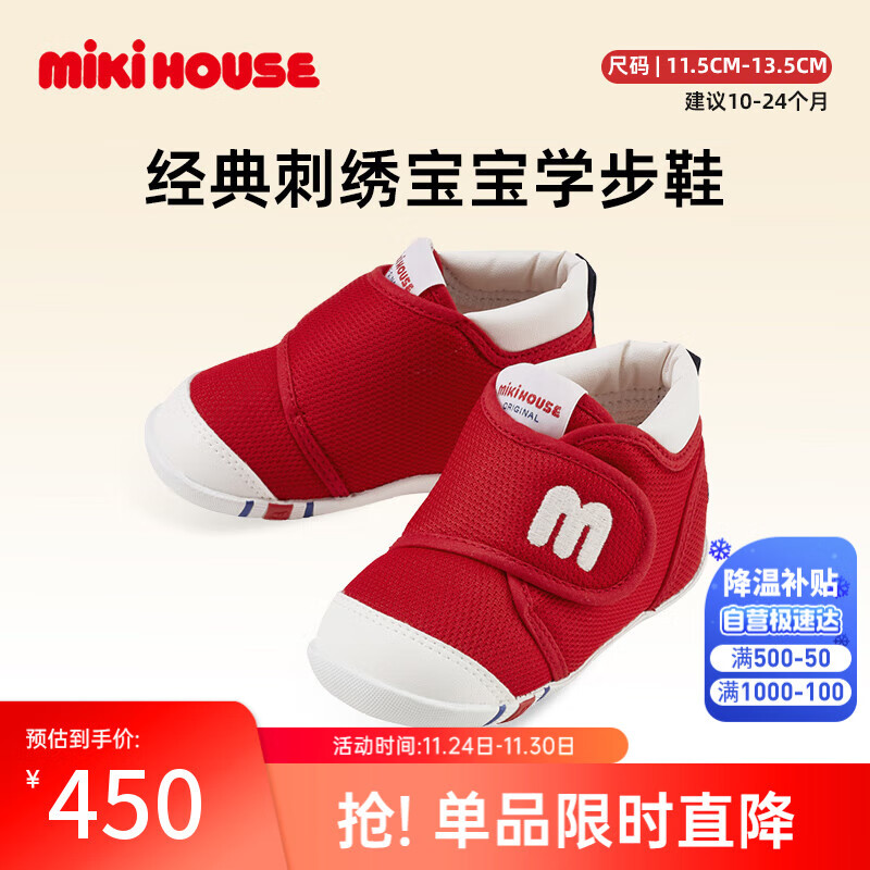 MIKIHOUSE经典刺绣宝宝学步鞋 红色 12.5 内长12.5cm
