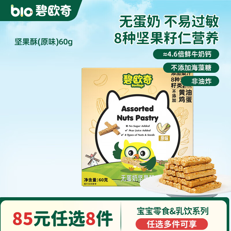 碧欧奇婴幼儿宝宝儿童零食乳饮集合 坚果酥-原味60g