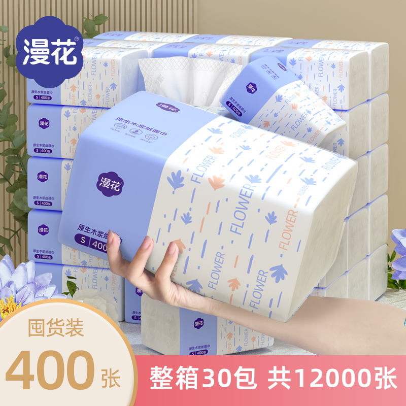 漫花400张大包医护级抽纸巾家用宿舍实惠原生木浆卫生纸厕纸抽