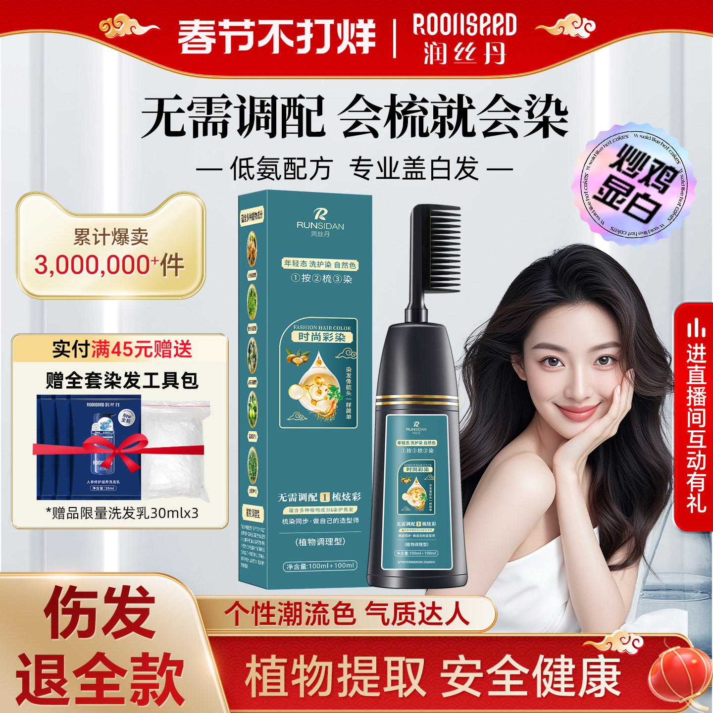 润丝丹染发剂黑茶色女泡泡遮白无刺激正品官方植物纯自己在家染发