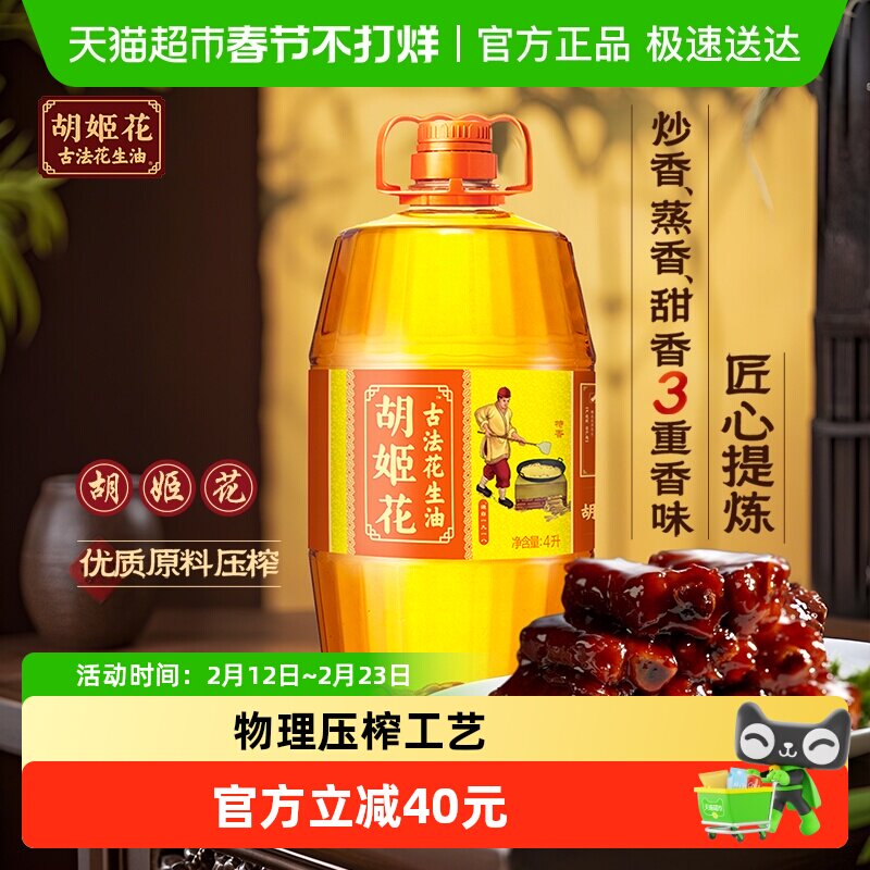 胡姬花古法花生油4L*1桶物理压榨 食用油