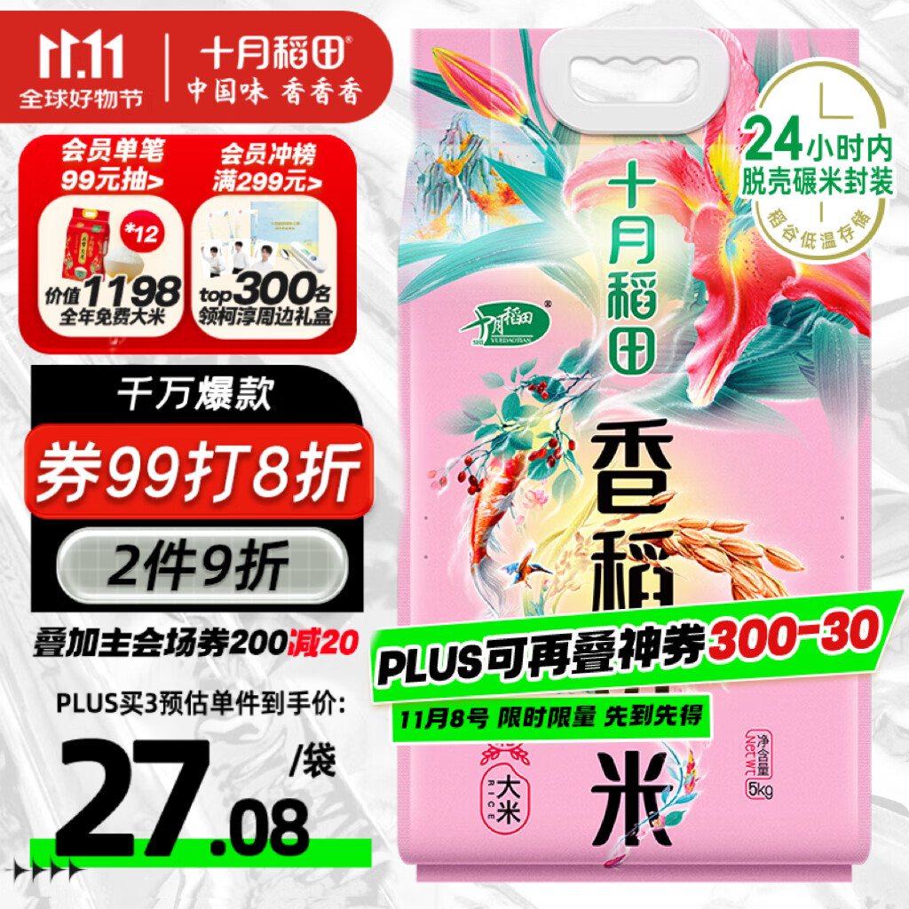 十月稻田 香稻贡米 东北大米 10斤(香米 粳米 5公斤/十斤)