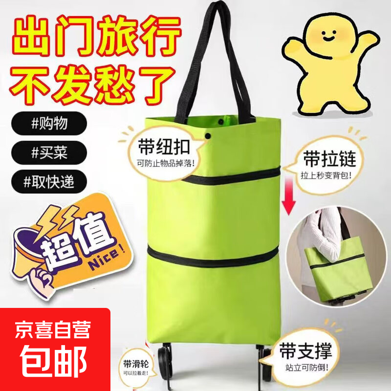 美术户外写生车单肩包手拉车可折叠小推车购物袋带轮子拉链女手提袋子便携大容量买菜车牛津布 手拉+单肩+手提 三用牛津包【颜色随机*1】