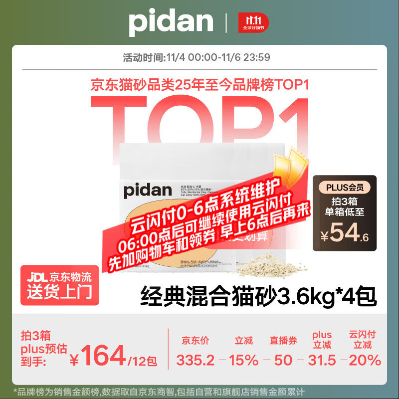 pidan混合猫砂 豆腐膨润土木薯60%:30%:10%混合3.6kg*4包