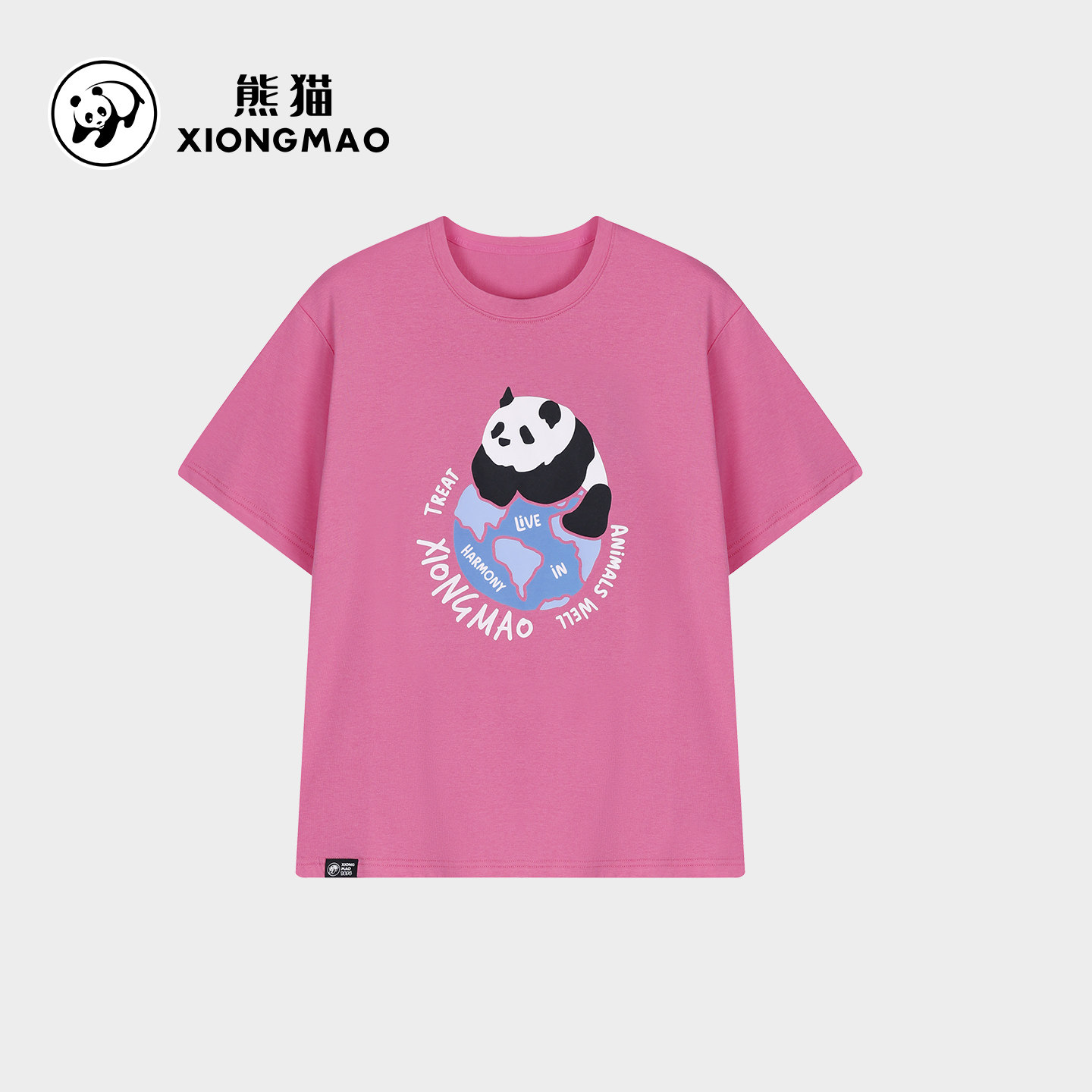 熊猫户外圆领短袖T恤2026春夏新款男女同款速干宽松透气纯棉上衣
