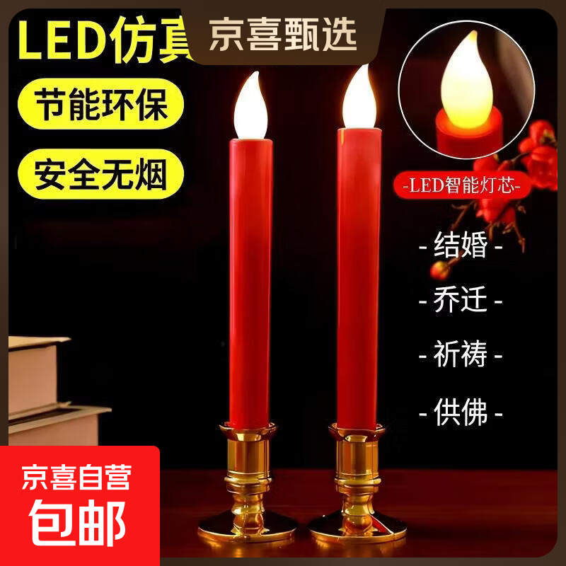 春节喜庆创意电子蜡烛灯装饰家用发光电池仿真蜡烛结 创意电子蜡烛【单只】带底座需自备2节7号电池