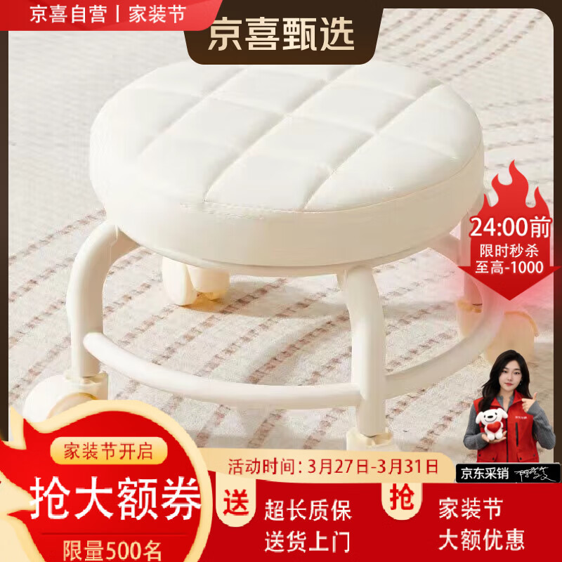 【京喜甄选】椅子万向轮美缝凳子带轮旋转擦地矮凳美甲修脚凳滑轮 儿童凳-米白色款