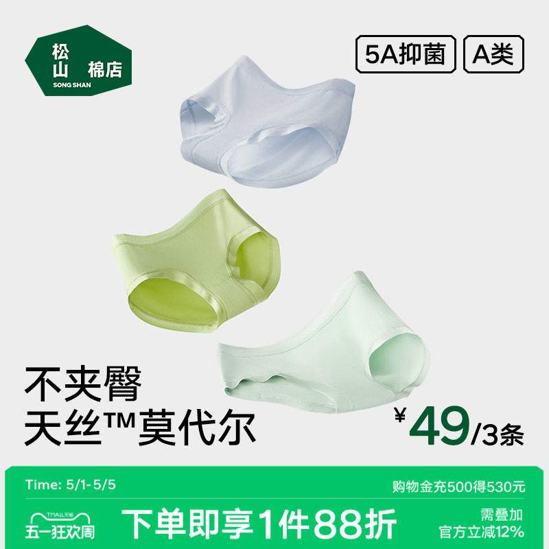 松山棉店小薄荷女士冰丝无痕内裤抗菌蚕丝加长底档三角裤透气薄款