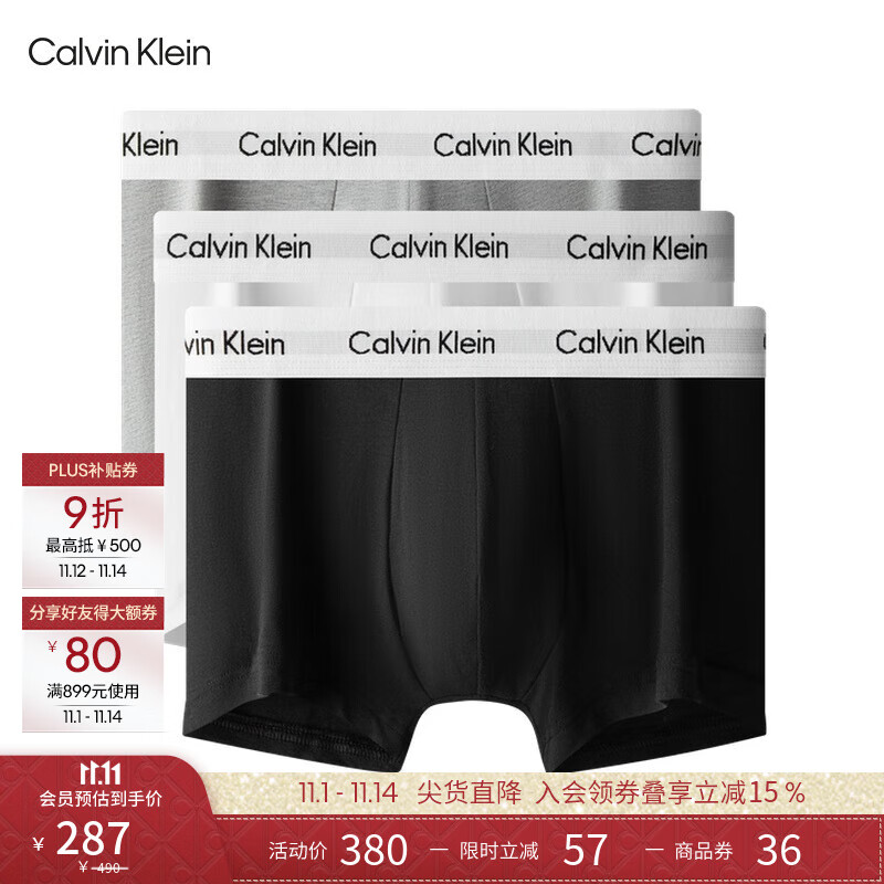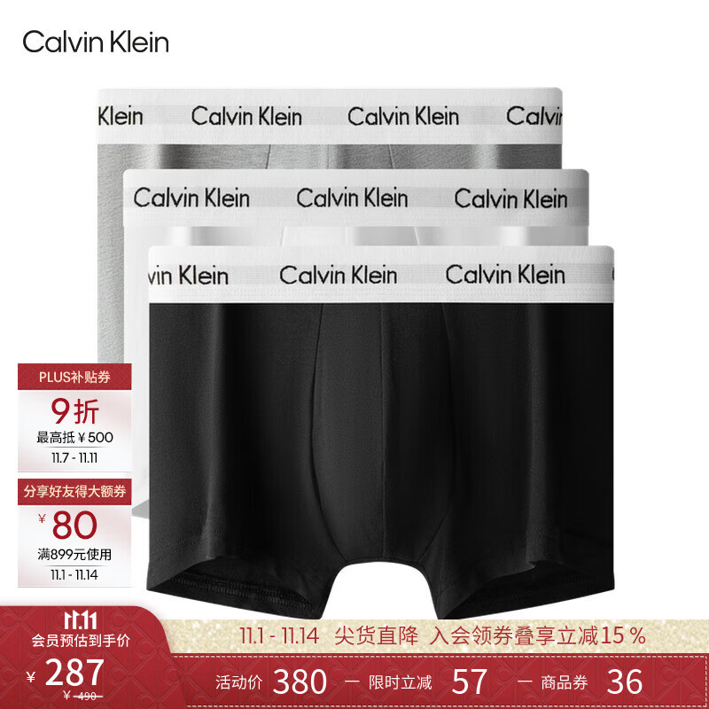 Calvin Klein内衣男士三条装ck提花腰边低腰棉质贴身防夹臀四角裤平角内裤男 U2664998-太空黑/月光白/椰青灰 3条 M