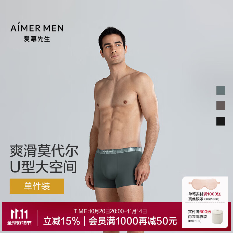 爱慕先生(AIMER MEN)内裤男士25春夏100支丝光莫代尔凉感纵享丝滑平角裤NS23M101 瓦松绿080 1条 3XL 185