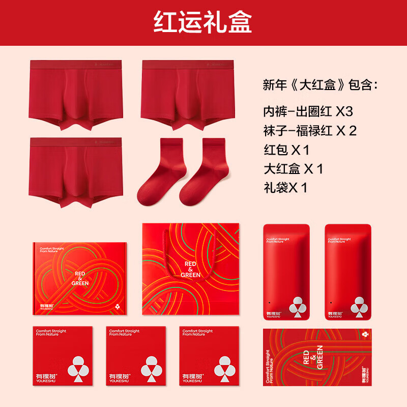 有棵树本命年马年红色男士内裤男纯棉10A抗菌四角男生送礼平角短裤礼盒