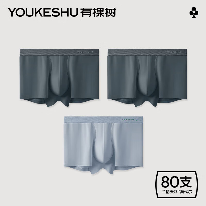 有棵树【80支莫代尔】男士内裤男青少年舒适平角裤男式四角短裤男生男款 【80支】水墨灰+水墨灰+星辰灰 3条 XL