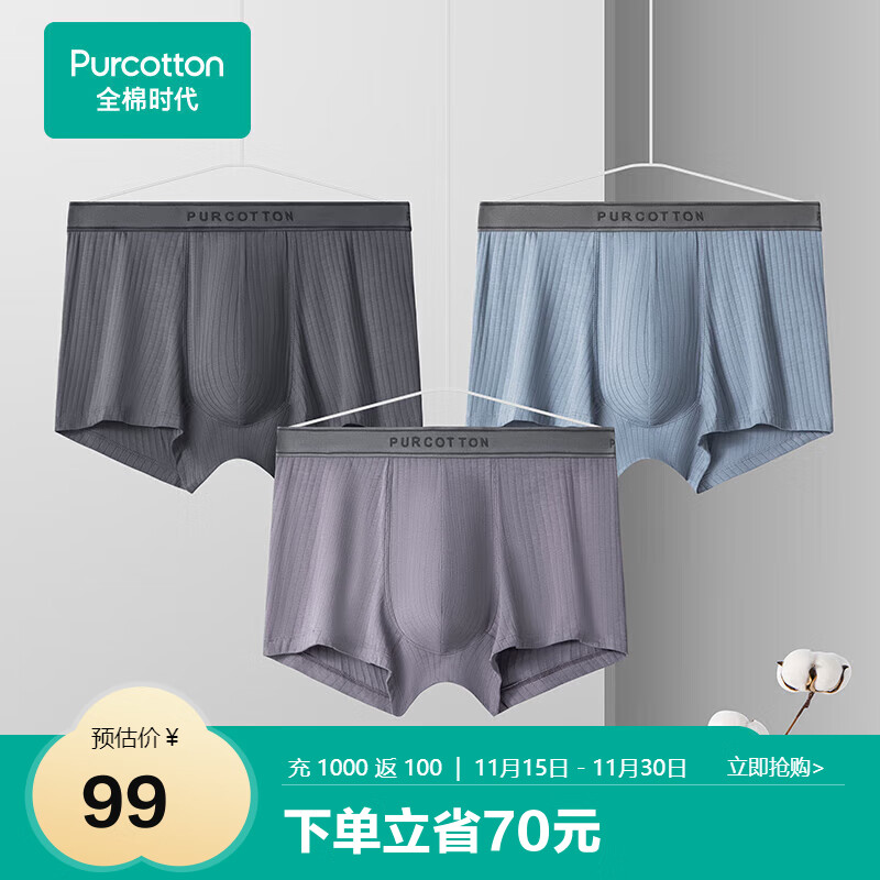 全棉时代内裤男【5A抗菌透气】95棉男士四角裤高弹不变形不闷汗