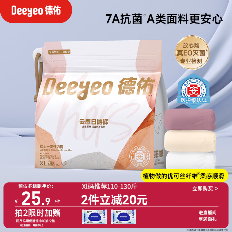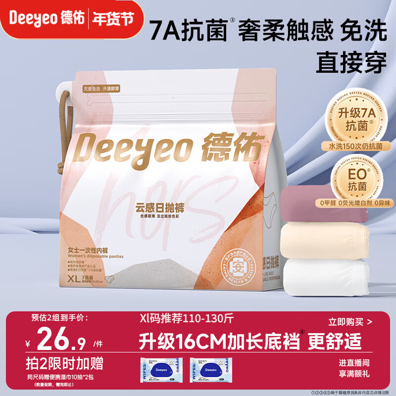 德佑一次性内裤女孕产妇出差生理期内裤7A抗菌XL码7条【 安全灭菌】