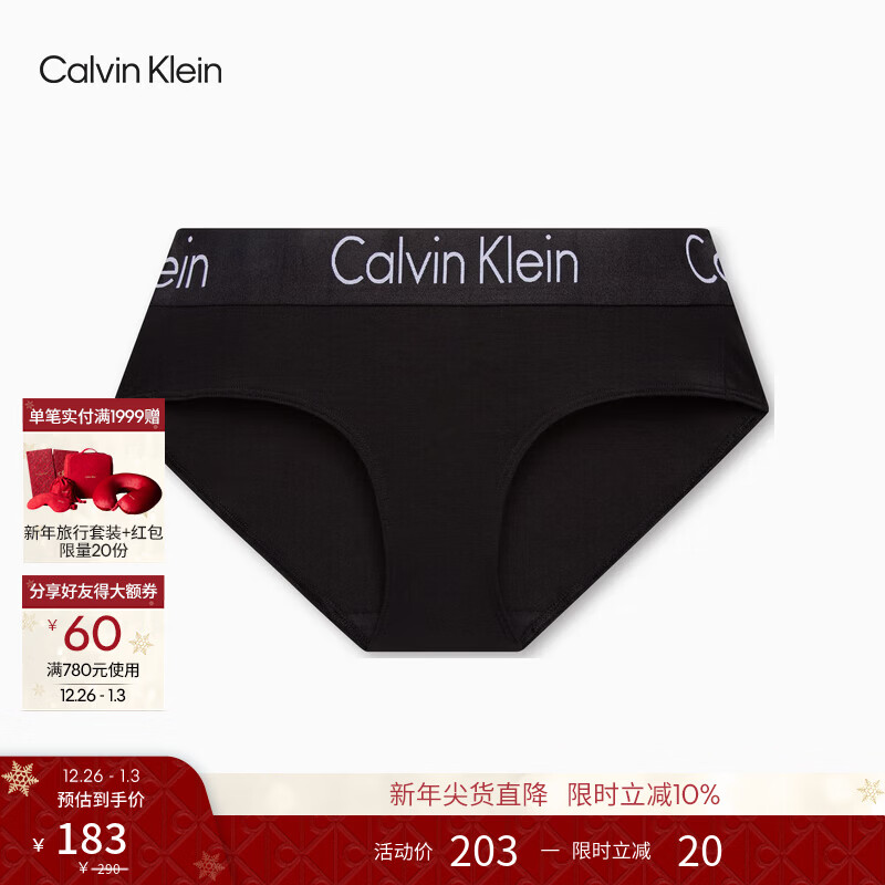 Calvin Klein内衣女士经典提花腰边ck柔软莫代尔混纺防夹臀半包臀三角内裤女 UB1-深黑色 1条 S