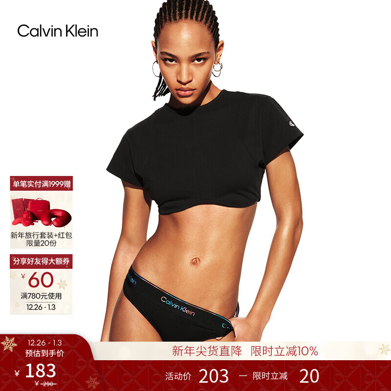 Calvin Klein内衣【摩登引力带】25女士炫彩提花ck棉质裆性感比基尼三角内裤女 UB1-太空黑 1条 S