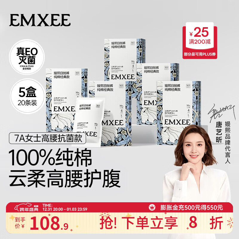 嫚熙(EMXEE)一次性内裤纯棉无菌旅行短裤产妇月子女士出差免洗高腰款 【7A抗菌纯棉高腰女士款】20条 XXL(建议120-150斤)