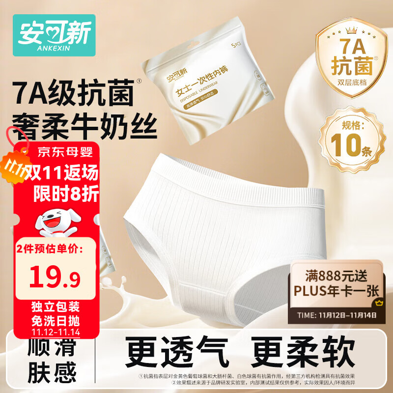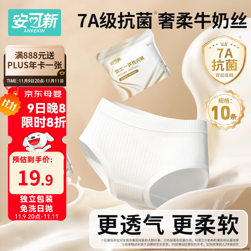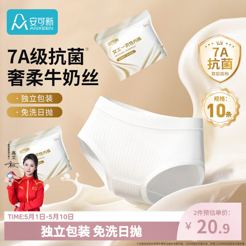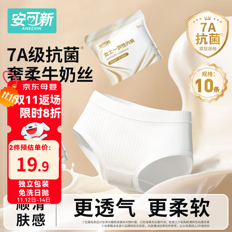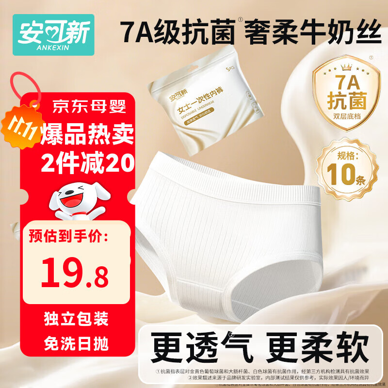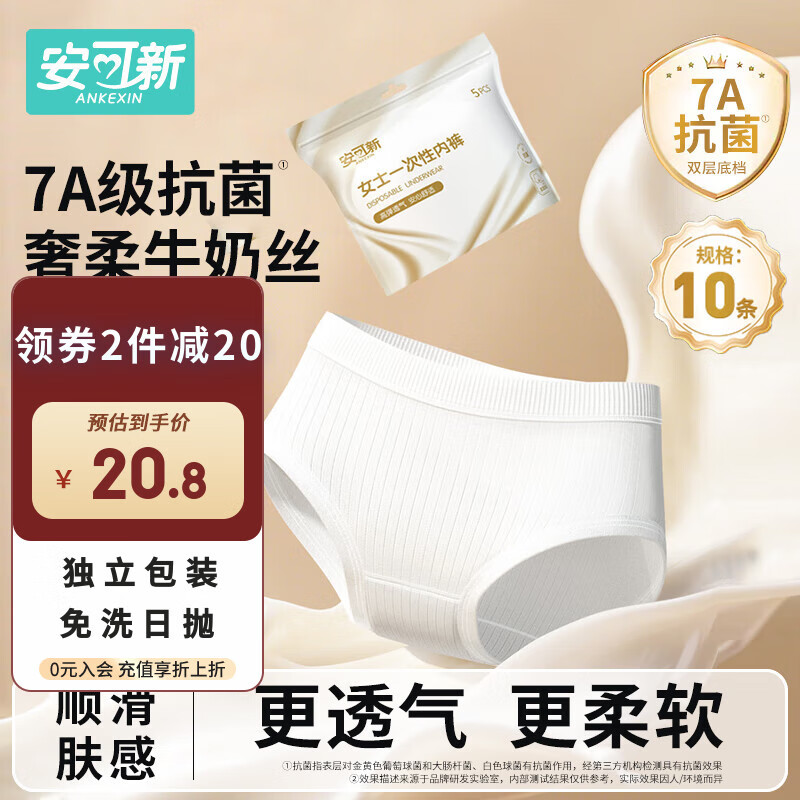 安可新牛奶丝一次性内裤女7A抗菌月子产妇旅行免洗出差日抛10条装XL码
