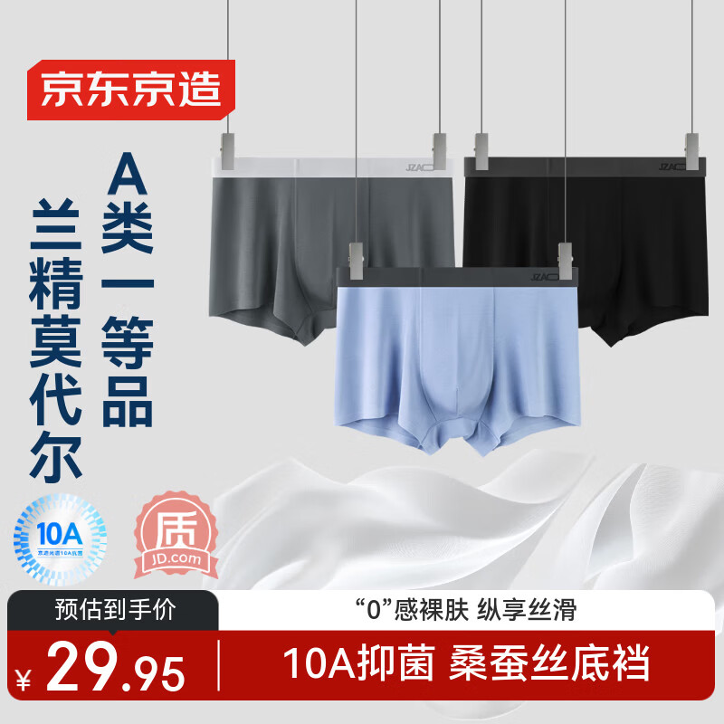 京东京造【兰精莫代尔】10A抗菌男士内裤男菌蚕丝裆透气平角 2XL