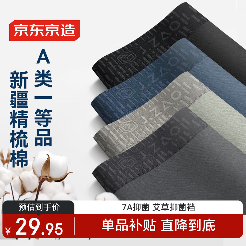 京东京造【总裁内裤】纯棉男士内裤7A级抗菌男平角裤大码四角短裤衩 2XL