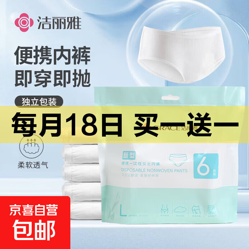 洁丽雅(Grace)一次性内裤女轻薄高弹无菌无痕免洗日抛女款三角短裤女士 1包 6条装 L码 【建议体重120-140斤】