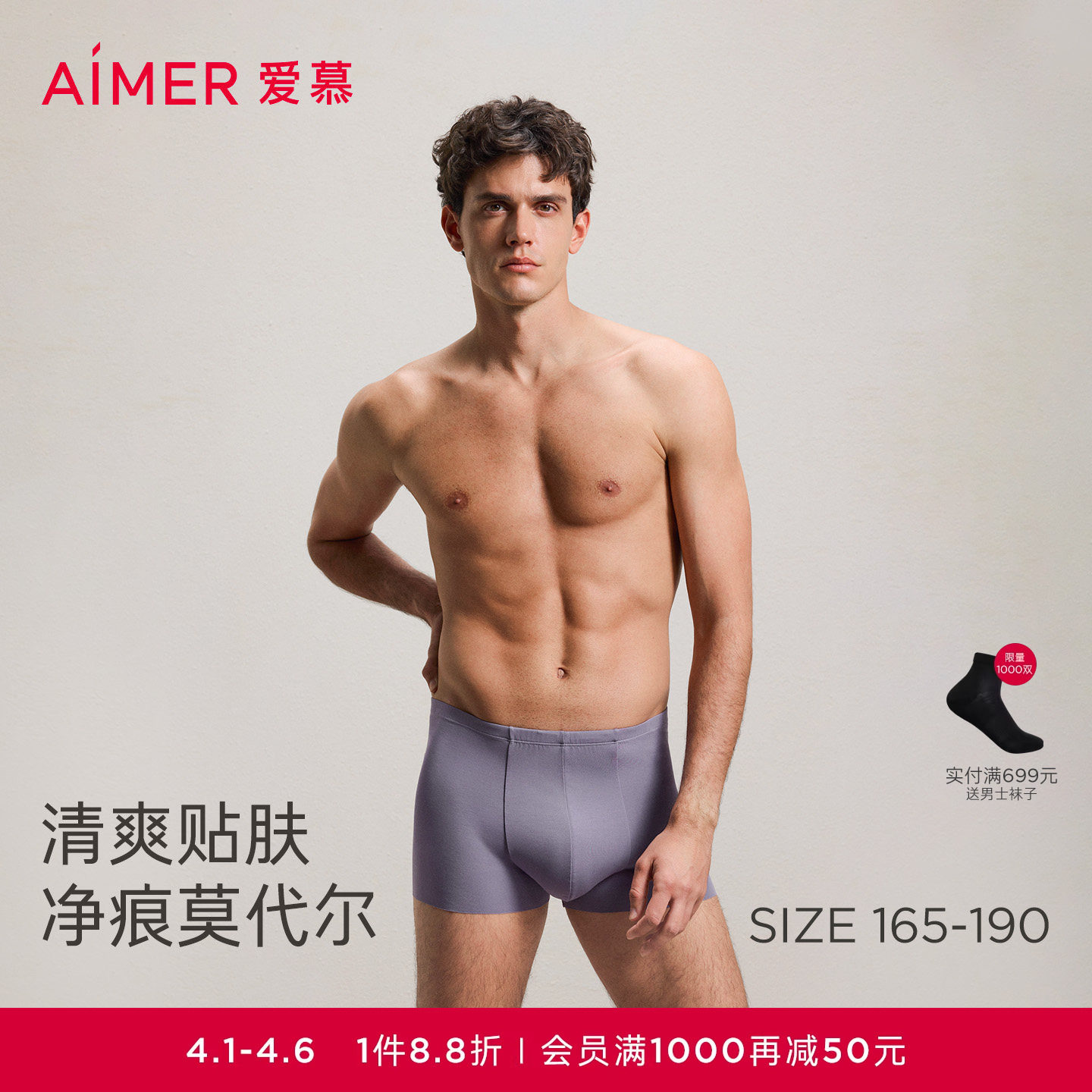 爱慕先生100S高支莫代尔经典高弹大码男士平角内裤春夏