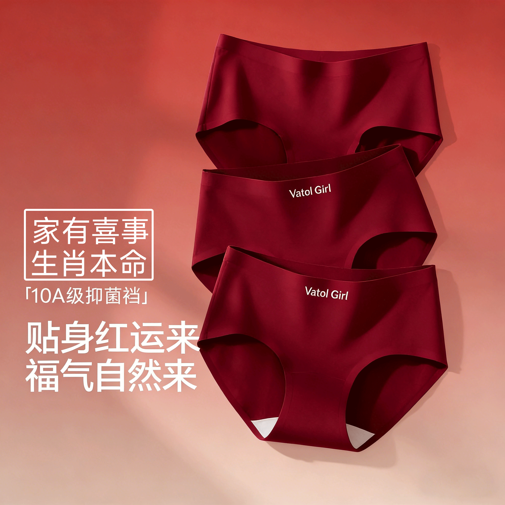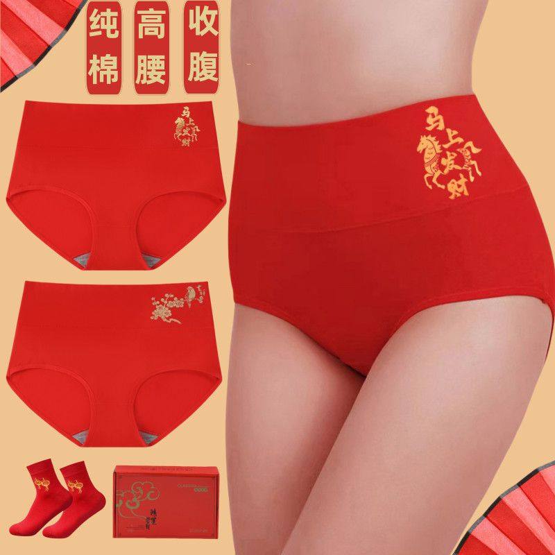 马年本命年女士红内裤纯棉大红中高腰结婚喜庆红色收腹女三角内裤