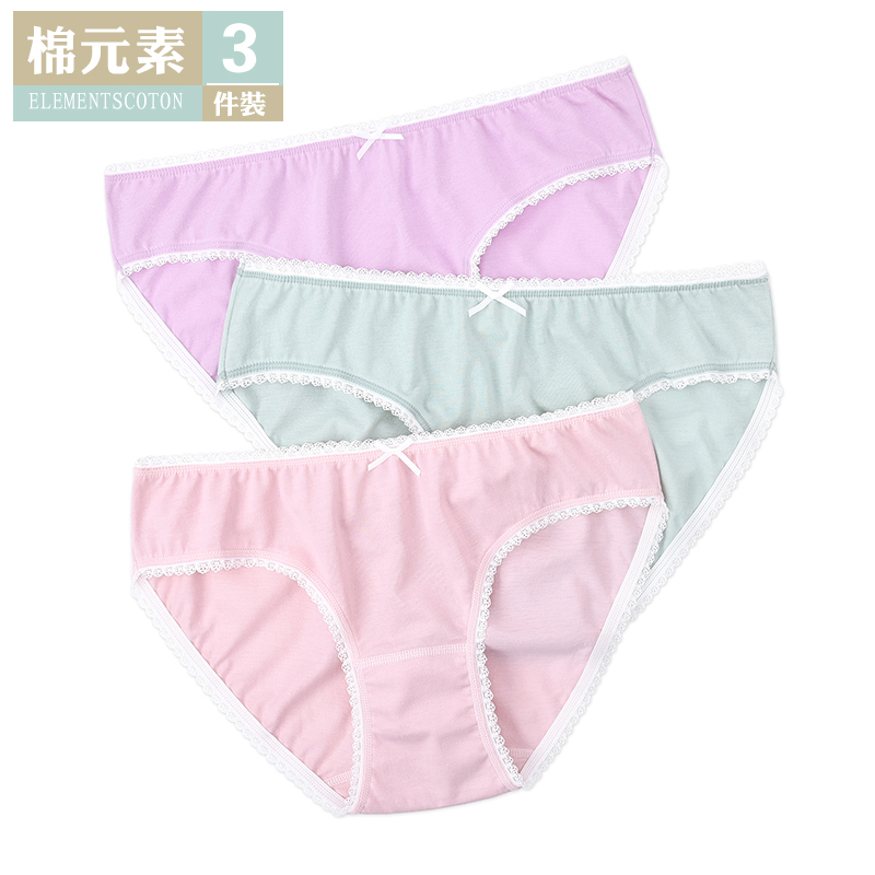 棉元素女士内裤纯棉女生纯色蕾丝花边中低腰舒适包臀三角裤LB610