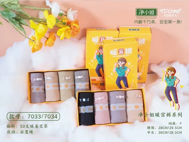 4条装粉岱俏美人净小姐女士内裤抗菌高腰暖姜御寒艾草纤维暖宫裤