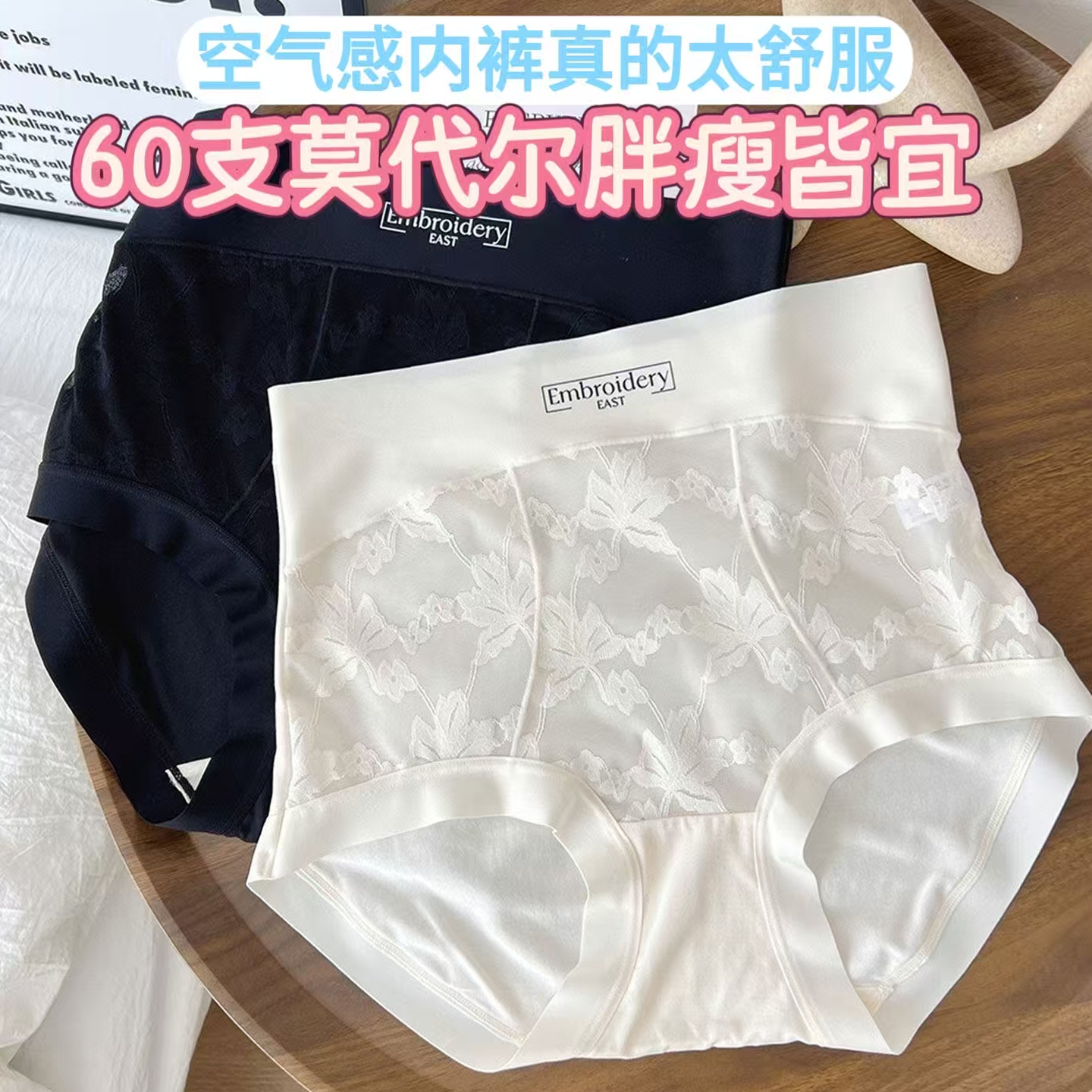 大码蕾丝性感内裤女莫代尔中高腰桑蚕丝抗菌裆胖mm200包臀三角裤