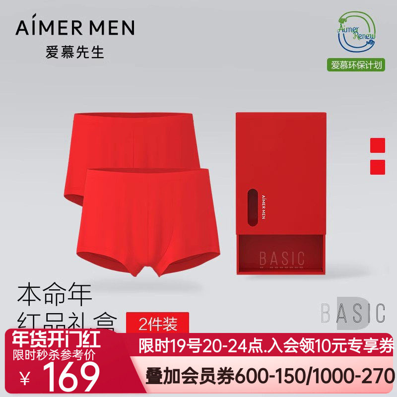 本命年内裤男士棉质平角底裤衩男生马年舒适透气红色鸿运四角裤头